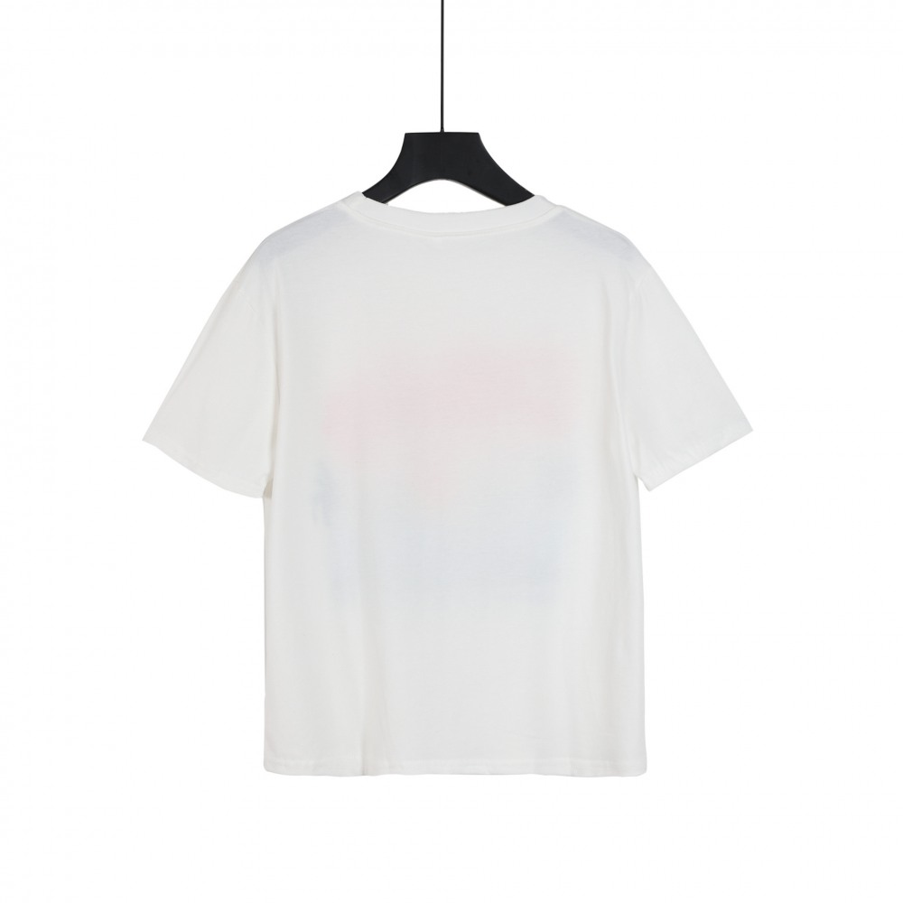 Ink Printing Gradient Mercerized Cotton V-Neck Short T-Shirt