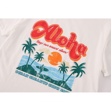 Explosion Style Coconut Tree Print Loose T-Shirt