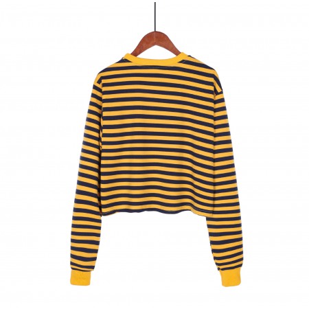 Explosive Hot Sale Striped Contrast Color Short Sweater T-Shirt