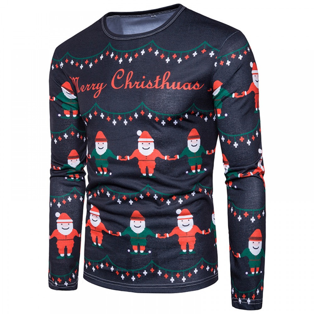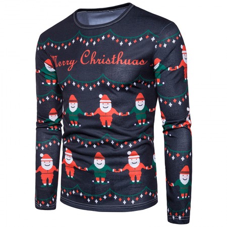 New 3D Personality Printing Fashion Men's Christmas Long Sleeve T-Shirt