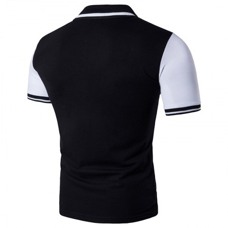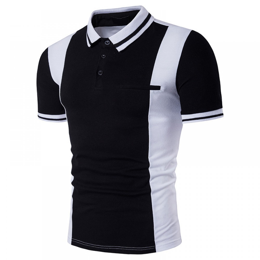 New Men's Style Black and White Contrast Lapel Short-Sleeved Large Size T-Shirt